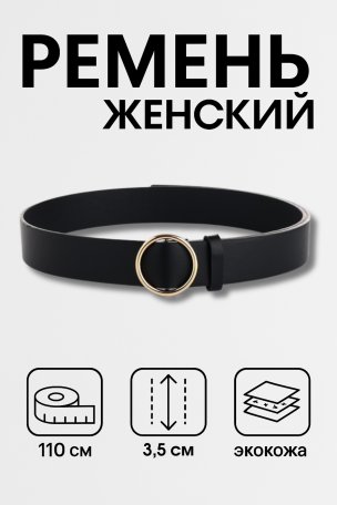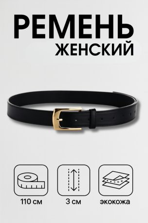 Ремень женский черный прямая золотая пряжка арт. 33230