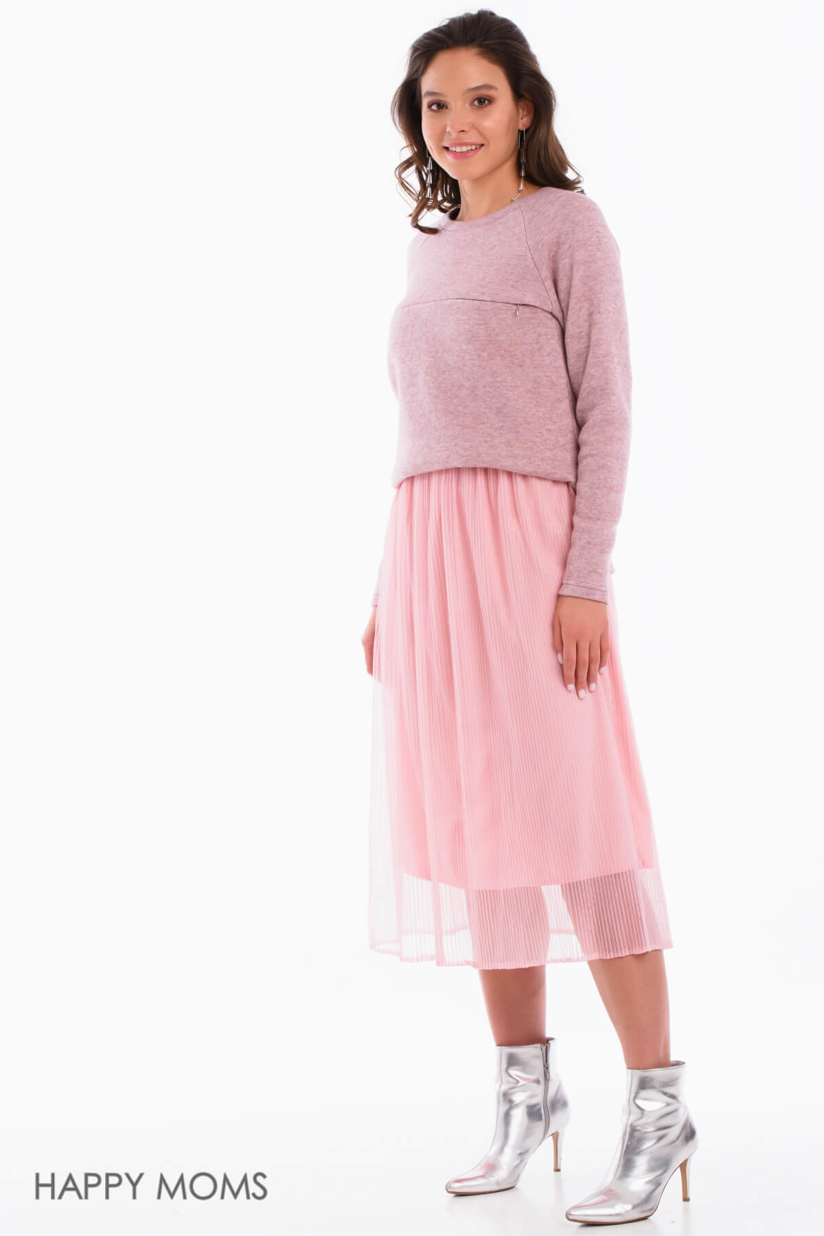 Светло-розовая прозрачная юбка для беременных на подкладе. Отличный вариант для элегантного лука, великолепно сочетается с блузками и джемперами.