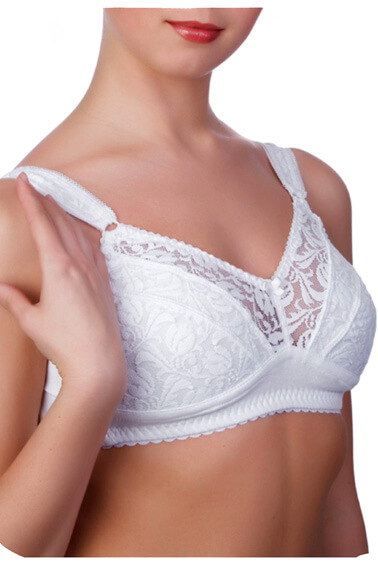 При увеличении груди чашечки бюстгальтера не стесняют грудь, а растягиваются, что защищает от растяжений кожи и потери формы. Отсутствие косточек избавляет от давления на грудь. Объем бюстгальтера регулируется застежкой с тремя положениями и бретелями.