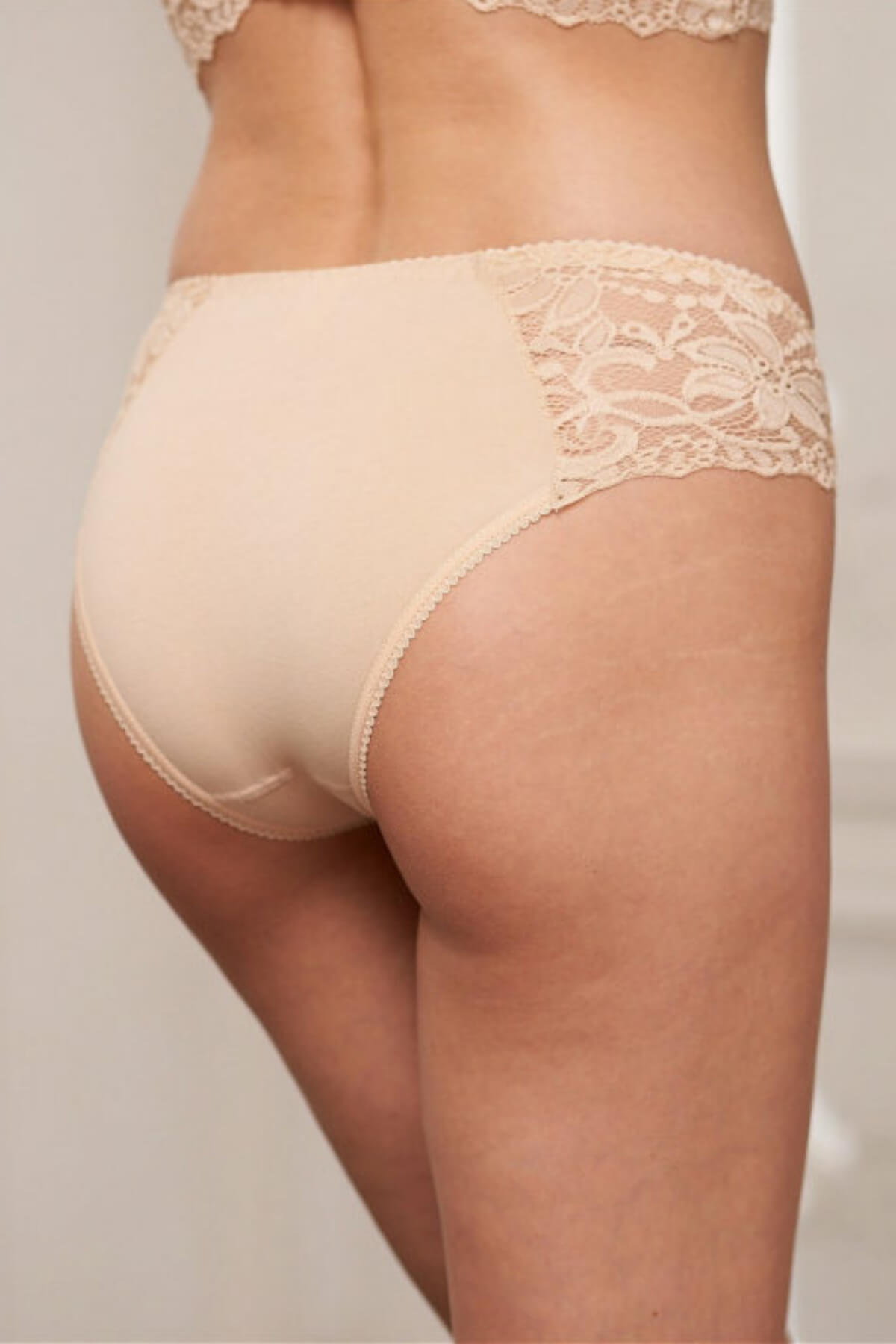 Трусики Viki выполнены из хлопкового трикотажного полотна с добавлением лайкры. Отлично сочетаются с бралеттом Viki образуя вместе гармоничный комплект. Модель по типу слипы очень удобна в носке. Срезы ножек обработаны тесьмой отделочной, верхний срез обработан эластичной тесьмой с фестонами. Трусики выполнены в сочетании с кружевными деталями, которые добавляют привлекательности данной модели. Для дополнительной выразительности трусиков спереди по центру настрачивается атласный бантик.