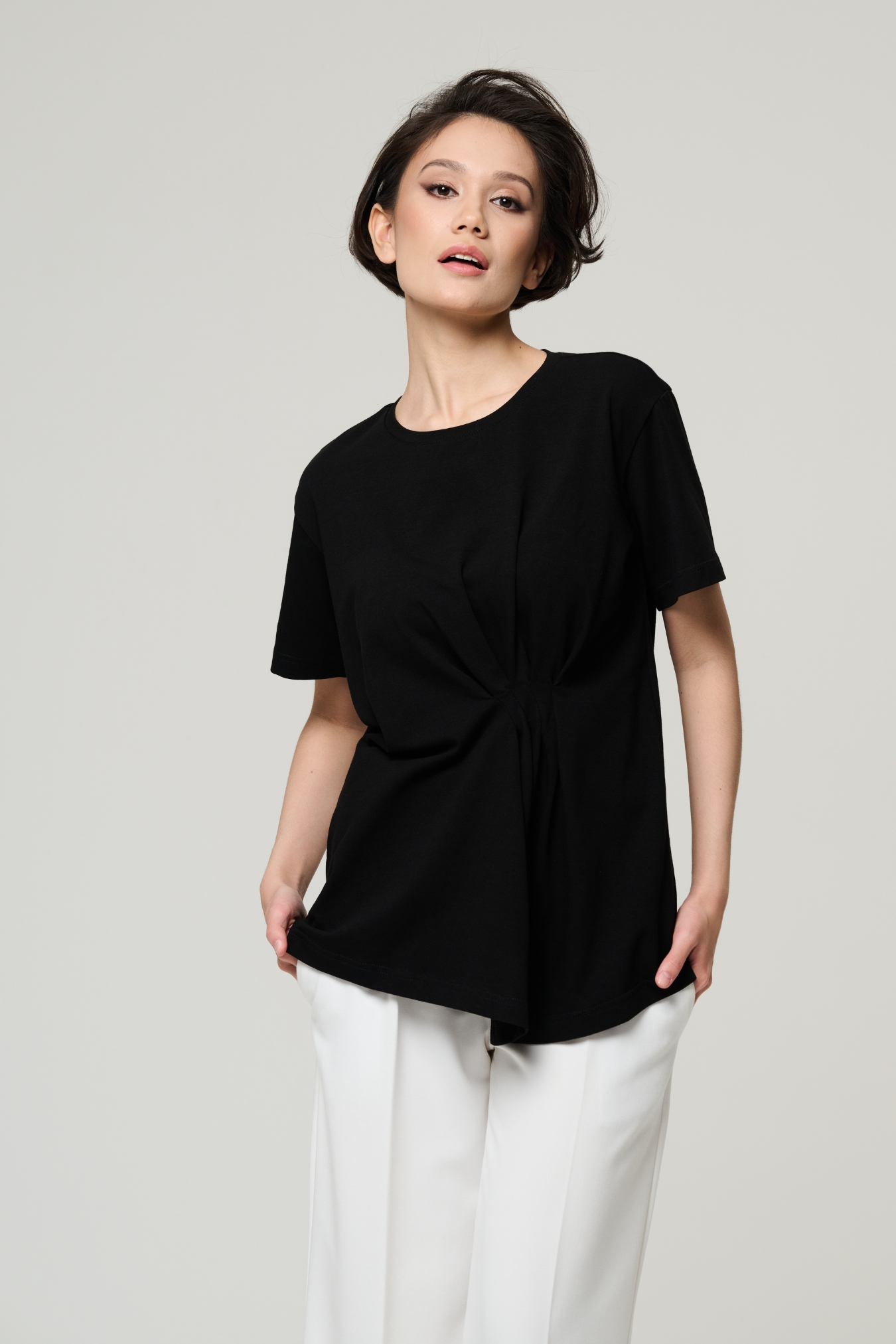 Благодаря просторному силуэту, футболка будет комфортной даже после родов, когда организму нужно время для восстановления. Она не стесняет движений, отлично сидит на фигуре и подходит для кормления малыша, если носить ее в сочетании с удобным топом для кормления.