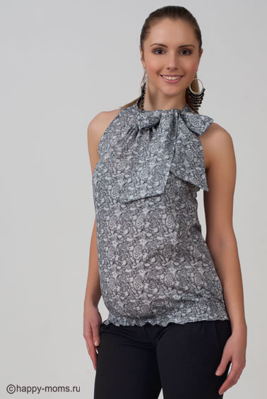 Ярко выраженным бант придаст Вашему образу необыкновенно изысканный вид. Низ блузки отделан мягкой, эластичной резинкой. Объем ни животик создается за счет свободного кроя. Отлично смотрится на любом сроке беременности, а так же после рождения малыша. Длина изделия от плеча до низа, по груди -60 (±1)см. На фото: модель, рост 173 см., обхват груди - 88 см, обхват бедер 97 см, имитация 5-го месяца беременности, размер товара 44.