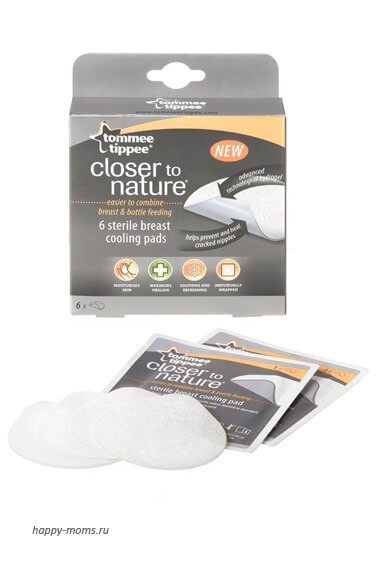 Вкладыши для бюстгальтера, охлаждающие с гелем, 6 шт. в комплекте. По 1 штуке в стерильных упаковках. Производитель Tommee Тippee (Англия). Используются при воспалении и трещинах на сосках в промежутках между кормлениями. Гидрогель, входящий в состав вкладыша, позволяет охладить воспаленную грудь, снять раздражение, компоненты, входящие в состав вкладышей, увлажняют кожу соска, делая ее мягкой и здоровой. Вкладыши одноразового применения, перед использованием он помещается на несколько минут в холодильник для охлаждения.