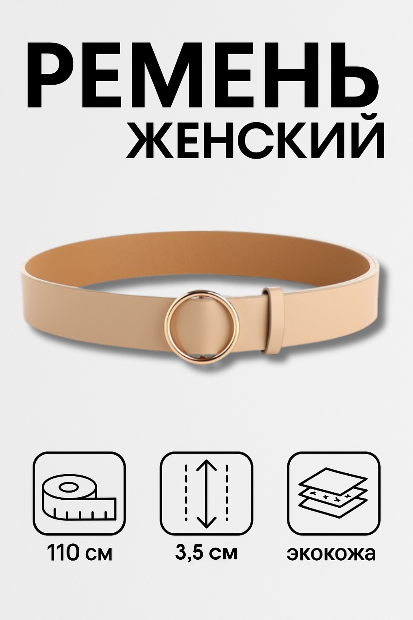 Ремень женский бежевый круглая золотая пряжка