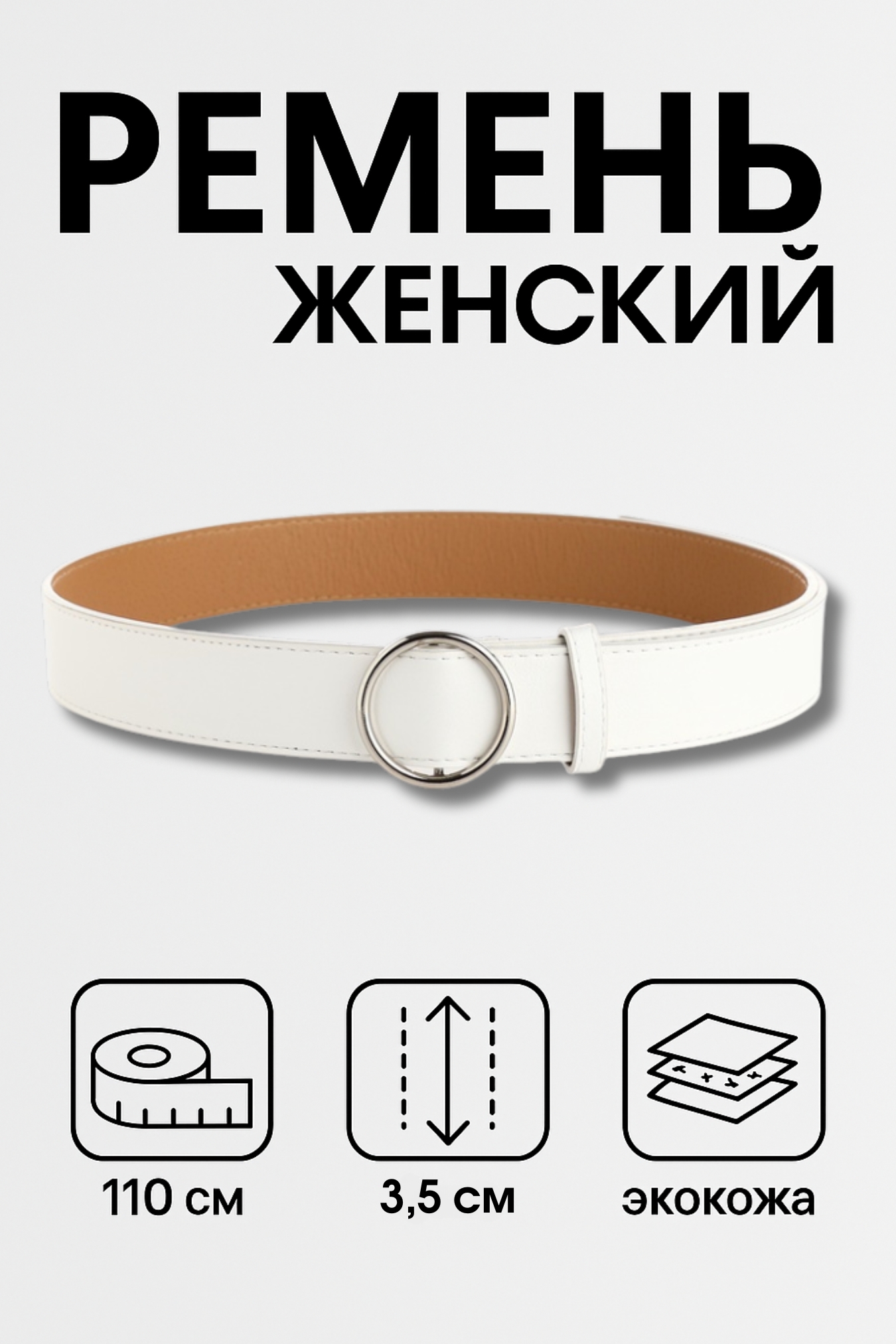 Ремень женский белый круглая серебристая пряжка
