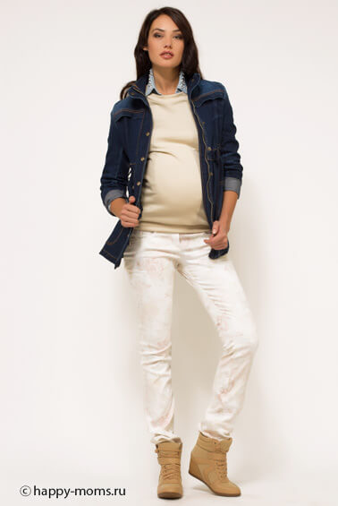 Сезон: Демисезонный. Очень женственная модель брюк, с оригинальным цветочным рисунком. Благодаря облегающему покрою модель сделает Ваши бедра и ножки визуально стройнее, не создавая при этом никаких неудобств для растущего животика. Прекрасно подойдет как для торжественных случаев, так и для неформального общения. Прекрасно будет сочетать со свитерами и блузками любой расцветки, позволяя составлять различные комплекты. Низкая эластичная вставка спереди, высотой – 8 (±1см). Регулировка объема для животика осуществляется при помощи резинки, продетой в пояс брюк. Резинка фиксируется на расположенную сбоку (внутри) пуговицу. Отлично смотрится на любом сроке беременности, а так же после рождения малыша. Стандартная длина по внутреннему шву - 82 см., Если Вам необходима длина 88 см, укажите это при оформлении, в пожелании к заказу. На фото: модель, рост 170 см., обхват груди - 85 см, обхват бедер 94 см, имитация 5-го месяца беременности, размер товара 42.