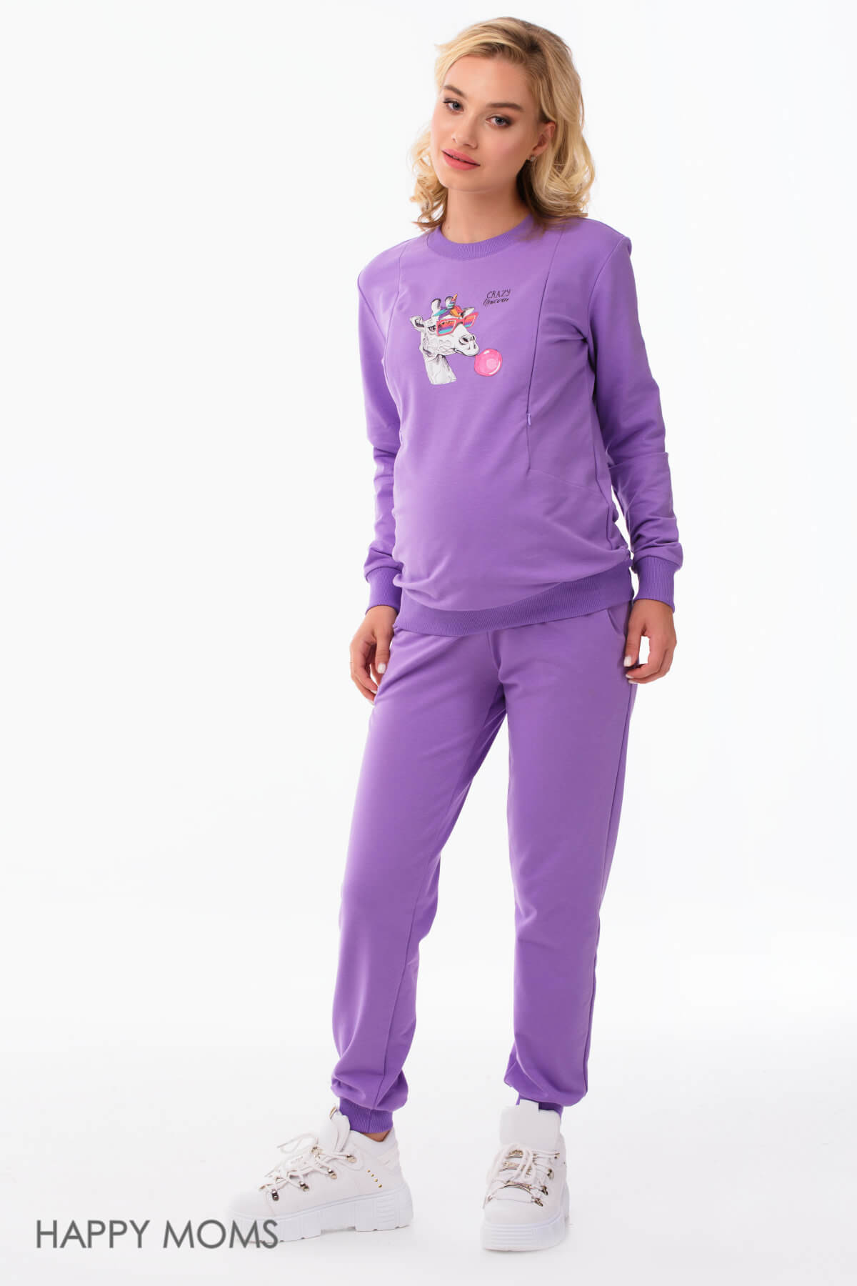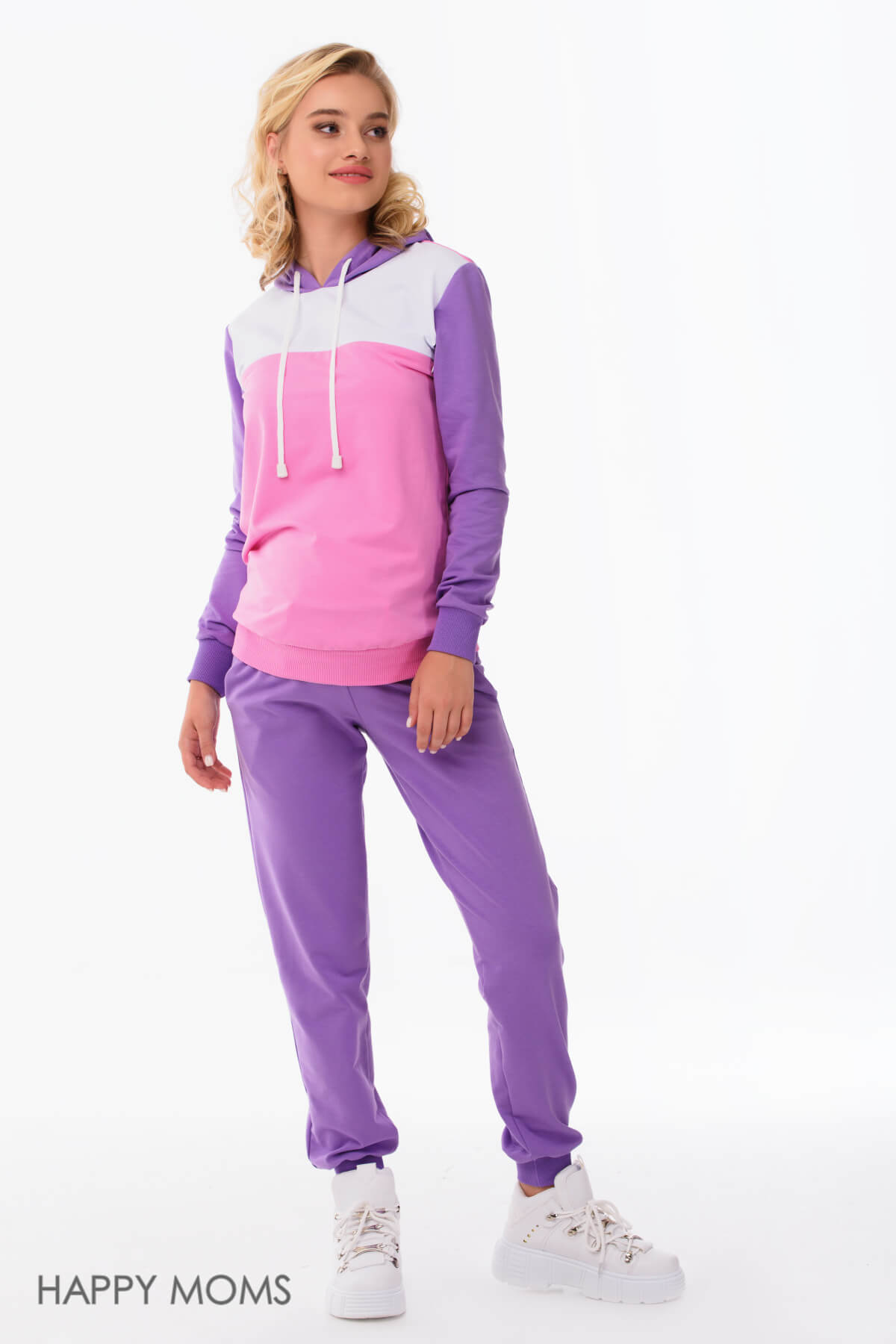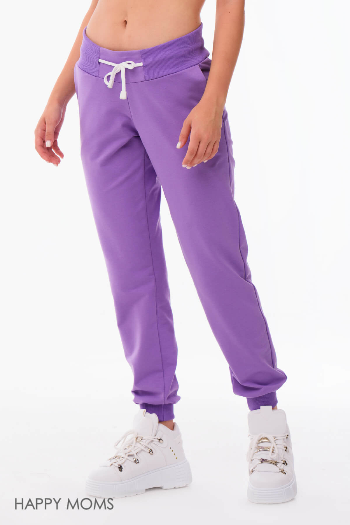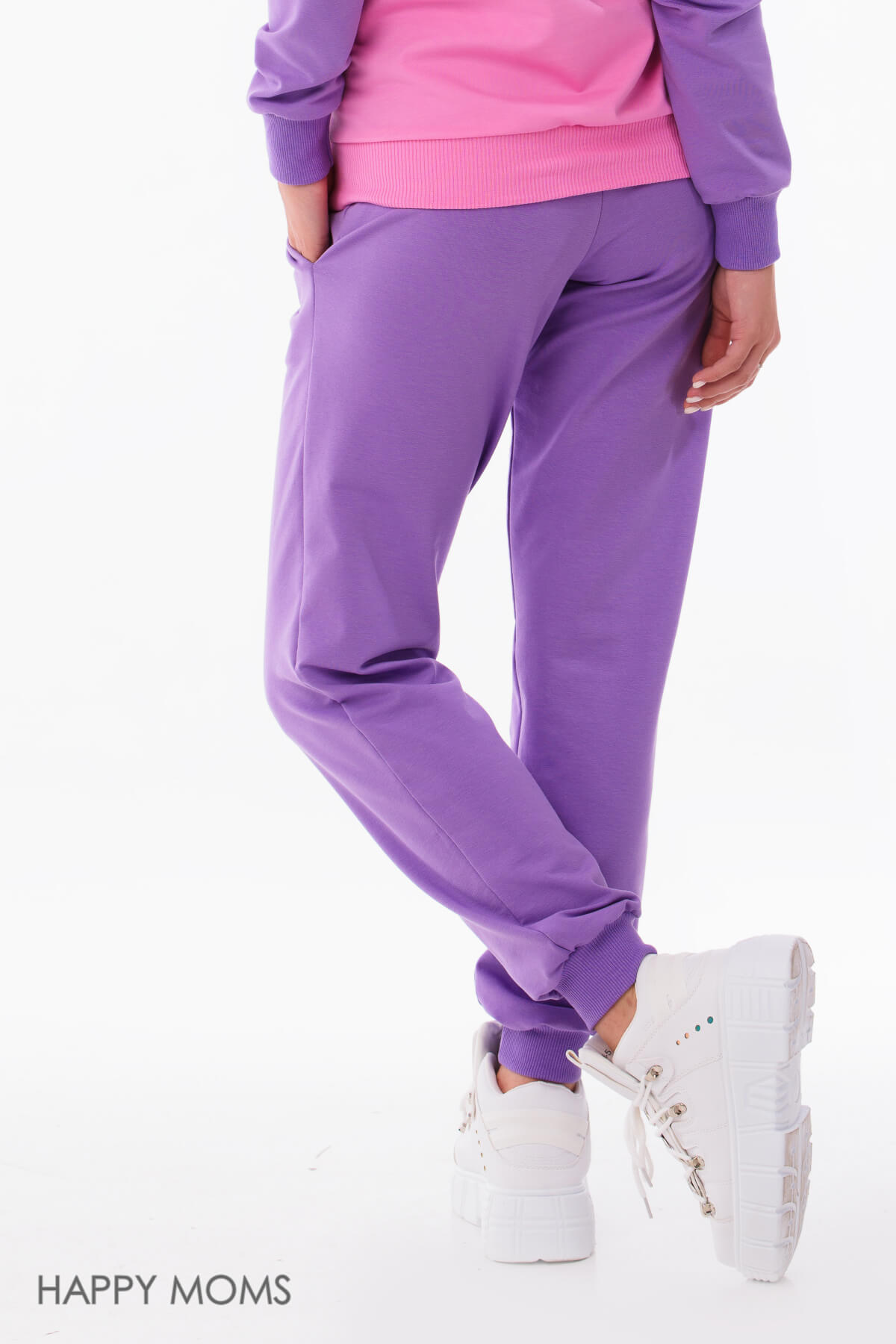 Спортивные брюки для беременных лилового цвета с кулиской из мягкого футера. Брюки прямые, манжеты по низу и пояс из трикотажной резинки в тон основной ткани. У брюк есть боковые карманы, пояс широкий. Регулировать объем по талии поможет кулиска, ее можно затянуть или ослабить в зависимости от срока беременности. Модель также подойдет и после родов. Брюки будут отлично гармонировать со спортивными джемперами и толстовками. Модель можно использовать как теплые брюки для беременных, трикотажные брюки для беременных, домашние брюки для беременных, брюки для беременных хлопок, брюки для будущих мам, брюки для беременных утепленные, брюки на резинке для беременных, брюки для беременных зимние, брюки для беременных больших размеров. Магазин для беременных женщин Happy Moms - это товары для беременных женщин, вещи для беременных, одежда для будущих мам, одежда в роддом для беременных, все для беременных. Беременность и роды - прекрасный период, будьте всегда неотразимы.