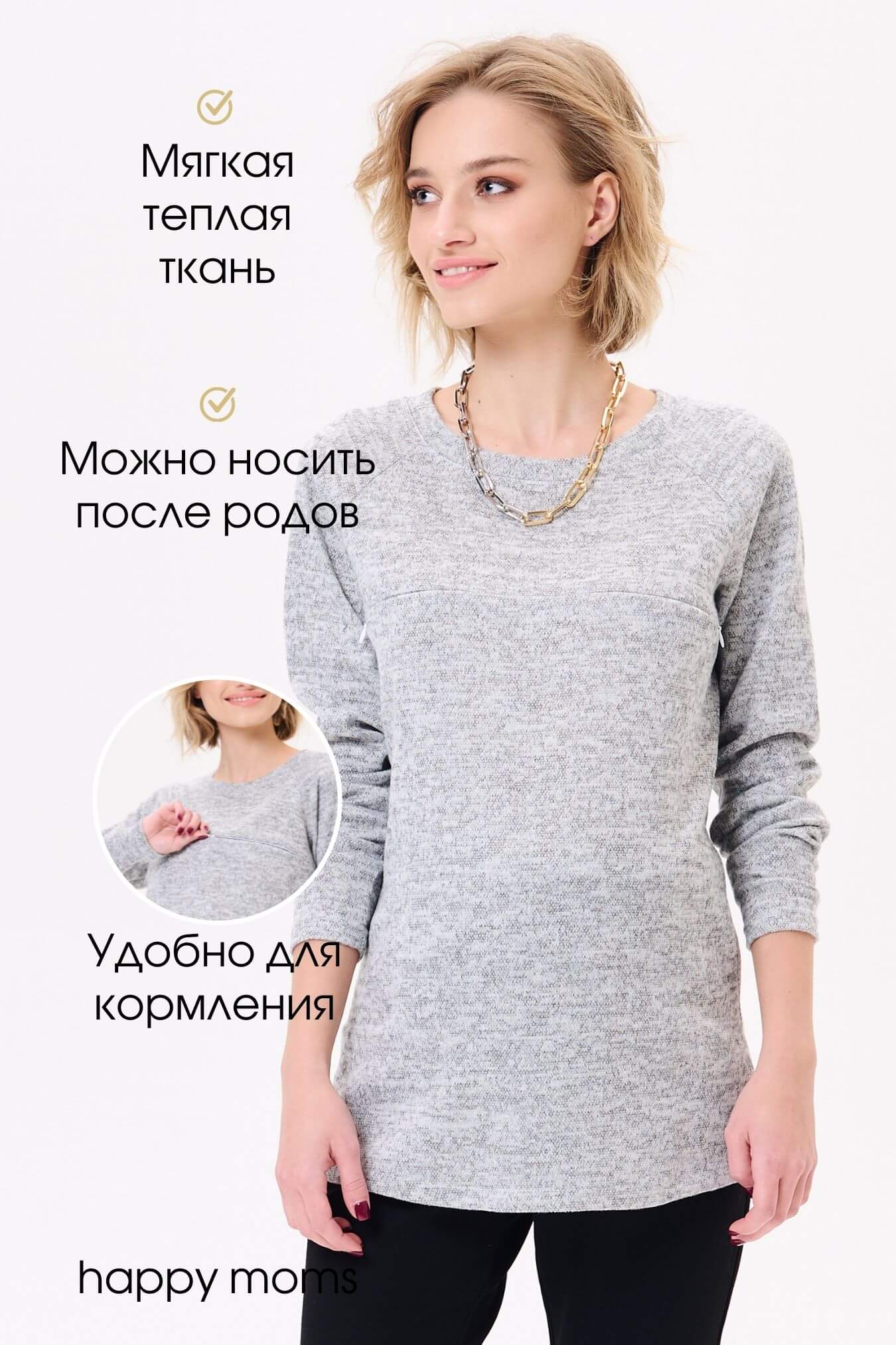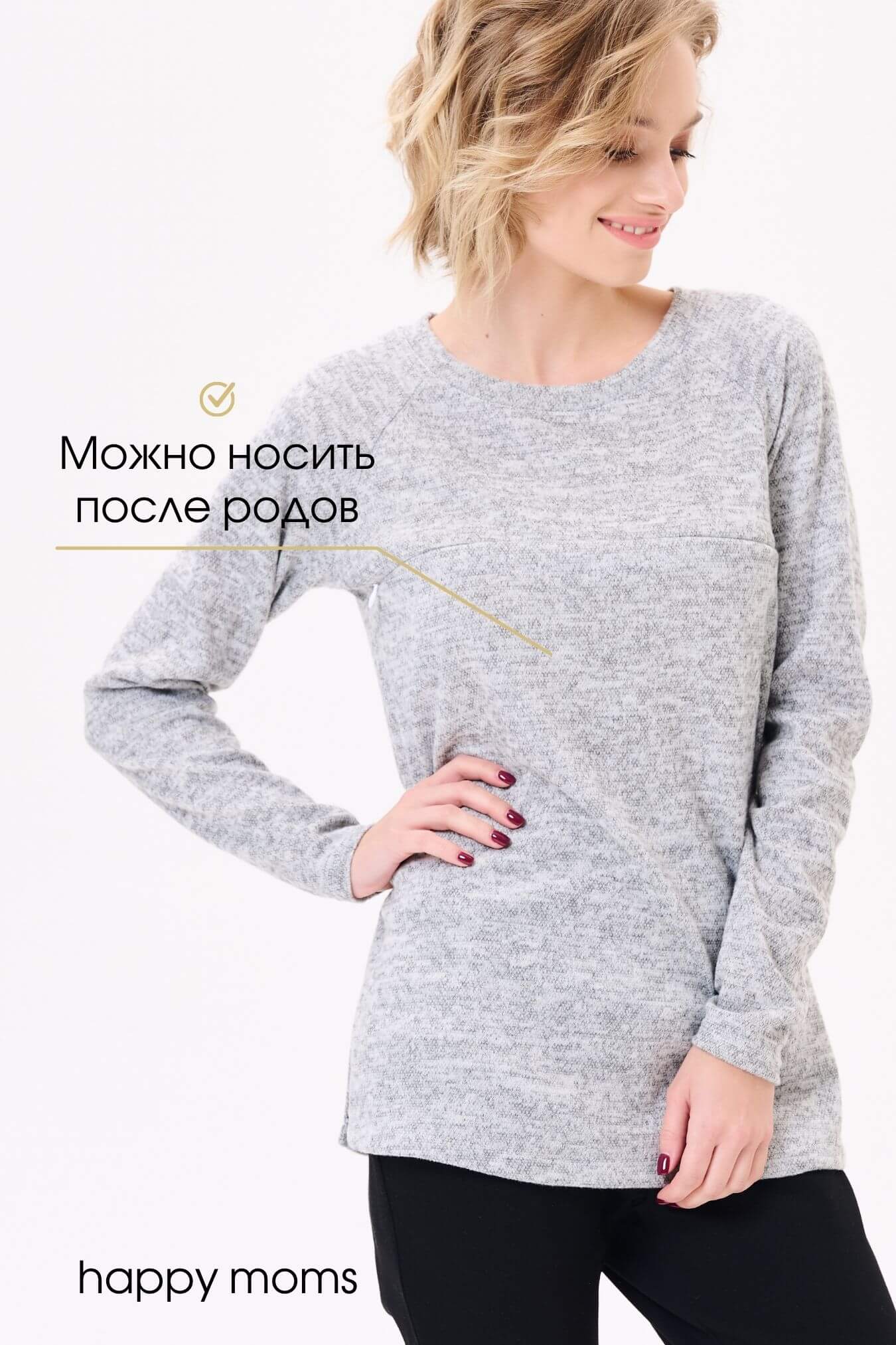 Серый меланжевый джемпер из вязаного трикотажа. Комфортная базовая модель для прохладных сезонов, легко комбинируется с разным низом, куртками и пальто. Универсальный цвет и лаконичный фасон позволяет обыгрывать джемпер под любые образы, он будет к месту в повседневном «кэжуал» луке, в спортивной стилистике. Трикотаж мягкий, теплый, длина модели до середины бедра – комфорт и защита от холода обеспечены. В районе груди секрет кормления – еще один плюс модели, благодаря которому мама сможет легко покормить малыша. Джемпер можно использовать как джемпер для беременных трикотажный, джемпер для беременных оверсайз, джемпер для беременных спортивный, кофта для беременных, свитшот для беременных. Магазин для беременных женщин Happy Moms - это стильная одежда для беременных, одежда для беременных большие размеры, товары для беременных женщин, вещи для беременных, одежда для будущих мам, все для беременных. Беременность и роды - прекрасный период, будьте всегда неотразимы.