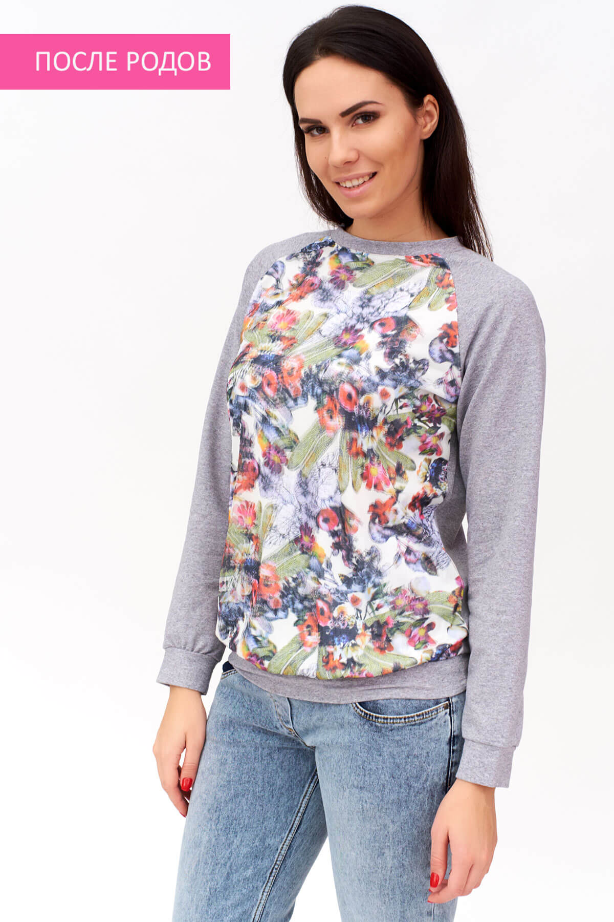 Джемпер для будущих мам из хлопковой ткани – футер. Длинный рукав на манжете, круглая горловина, по центру изделия принтованная вставка с 3D эффектом, подчеркнет Вашу индивидуальность и сделает образ более запоминающимся. Объем на животик создается за счет эластичности ткани и легкой сборки по низу изделия.