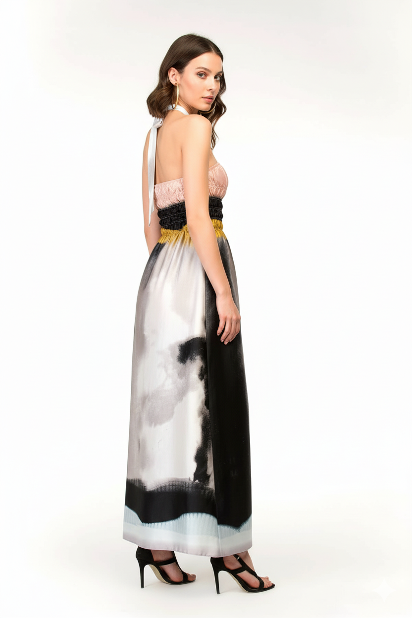 Летний сарафан для беременных с модным эффектом «варенки». Сделан из струящейся ткани, в трендовой стилистике бохо. Женственный лиф украшен изящным бантиком и лямками, преходящими в роскошный шейный бант. Спинка лифа собрана на резинку, это позволяет верху модели идеально облегать фигуру. Юбка А-силуэта, в пол, с дополнительным объемом на животик. Ткань экологичная, безопасная для мамы и будущего малыша, дышит, впитывает лишнюю влагу, не допускает перегревания. Модель отлично гармонирует с любой летней обувью, так же великолепно смотрится с легкими полуспортивными кедами и слипонами на низком ходу.