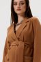 Жакет для беременных классический двубортный с пиджачным отложным воротником и накладными карманами. Прямой крой модели будет удобен для будущей мамы. Придать изящества поможет тканевый пояс.