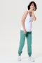 Майка белая, в классической спортивной стилистике, прекрасно оттеняет укороченный джемпер зеленого оттенка. Джемпер с круглой горловиной, плечи спущены, рукава свободные с манжетами. На груди расположен фирменный логотип. Модель подойдет на весь срок беременности и после родов.