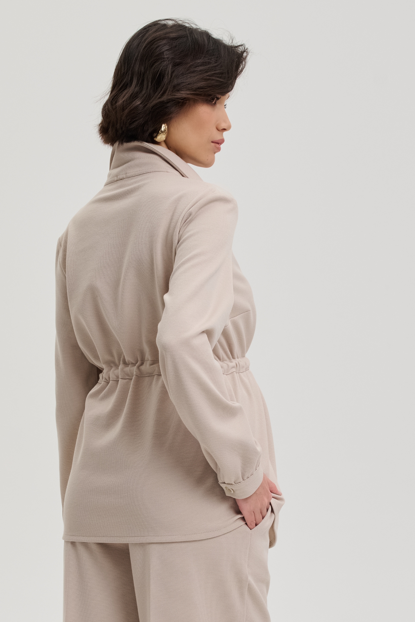 - Блузка прямого силуэта с кулиской позволяет подогнать модель по фигуре, адаптируясь под растущий живот.