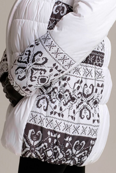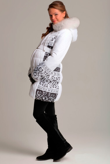 Зимнее пальто для беременных длина ниже середины бедра, полуприлегающего силуэта. Застежка молния закрыта планкой. Прекрасный съемный пояс. Мех на капюшоне, и сам капюшон отстегивается. Нижняя часть рукава и боковая вставка изделия сделаны из ткани со скандинавским принтом. Объем на животик создается за счет эластичных вставок в области животика. Рекомендуется носить при температуре до -30 С. Отлично смотрится на любом сроке беременности, а так же после рождения малыша. На фото: модель, рост 175 см., имитация 5-го месяца беременности, размер товара 44.