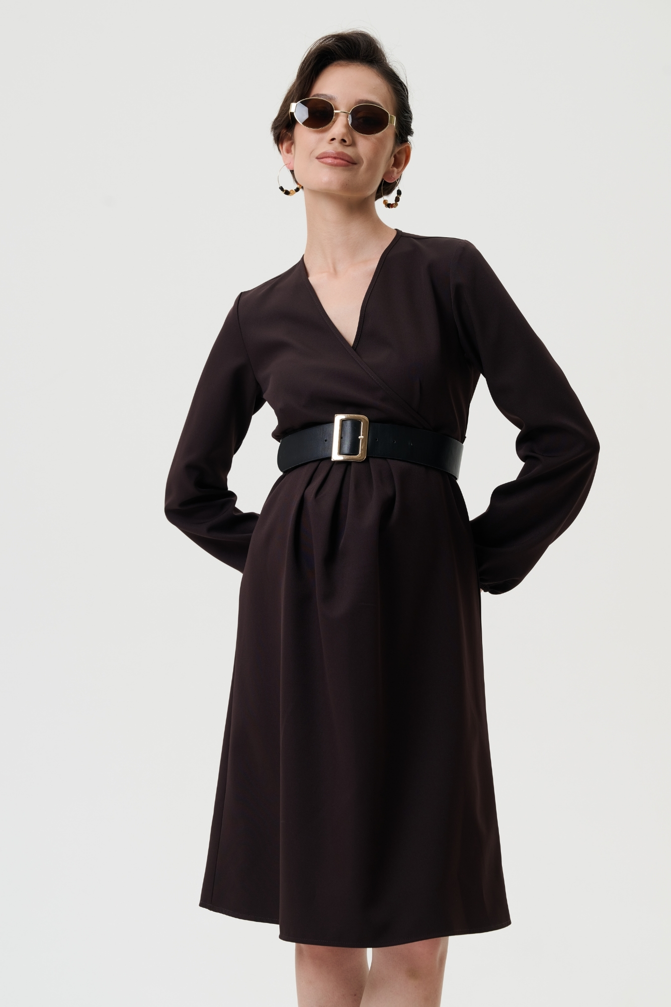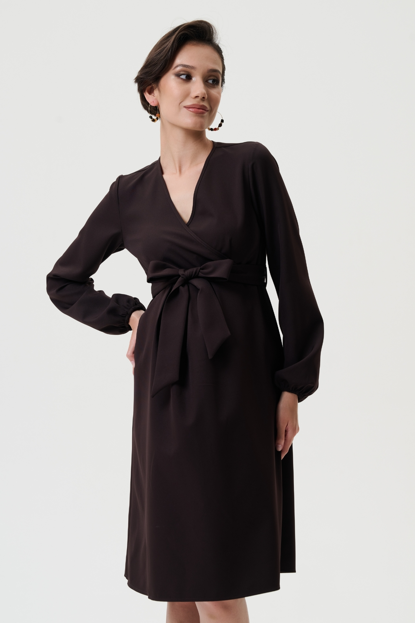 Платье миди для беременных — универсальный выбор, который одинаково хорошо подходит и для деловых встреч, и для праздничных мероприятий. Благодаря драпировке и сборке в области животика, модель комфортно сидит на любом сроке беременности и помогает сохранить элегантный силуэт.