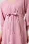 Платье женское летнее для беременных длиной до колена из розовой ткани с мелким гороховым принтом идеально подойдет для будущих мам. В комплекте с моделью идет пояс, который придает платью нарядное праздничное настроение.