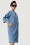 Модель мини имеет округлую горловину, переходящую в V-образный вырез. Спущенное плечо и укороченные рукава с широкой планкой мягко подчеркивают плечи. Прямой свободный силуэт и комфортная длина позволят носить наряд на всем сроке и после родов. Оригинальные прорезные карманы с клапаном разбавят минималистичный образ, а крупные украшения и аксессуары добавят изюминку.