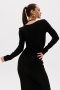 Платье женское черное повседневное из трикотажного полотна Лапша длиной ниже колен. Модель имеет V-образную горловину и оригинальную отлетную кокетку. Завязка оборачивается вокруг шеи в кулиску и выполняет декоративную и функциональную роль, ее можно затянуть и показать животик, а можно просто распустить. Рукав длинный классический. Платье кокетливо облегает фигуру, при этом не сковывая движений. Модель универсальна, подойдет как для повседневного использования, так и, обыграв ее аксессуарами, можно получить вечерний образ. Можно использовать как платье повседневное, платье женское офисное, трикотажное платье, стильное платье женское. Магазин женской одежды Made For You - это красивые женские платья, одежда женская, стильная одежда для женщин.